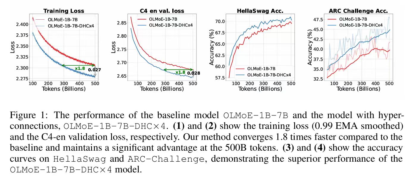 另一方面,Hyper Connections 在最终效果上也表现优异: